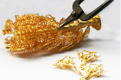 沖洗掉石膏,取出澆鑄好的黃金毛胚件“金樹”
