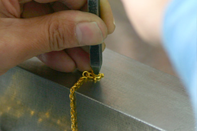 使用銼刀挫掉黃金產品上的披鋒及毛刺